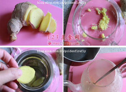 3、注入滚烫的热开水,稍微搅拌,等待10-13分鐘,等薑汁泡開。