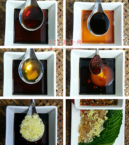 12、一勺香麻油放进调料中。
