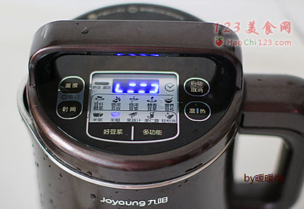 3、接通电源,选择“米糊”键后按下“启动”键。待机器发出“滴滴”的提示声,黑豆紫米山药饮就做好了。