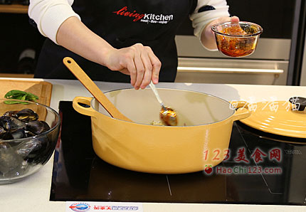 3、根据食材的用量加入冬阴功酱炒香,喜欢味重的可以多放。