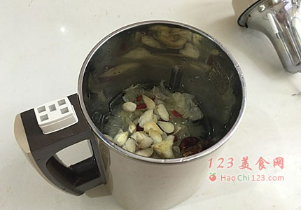 6、开启豆浆机玉米汁功能(没有这个可以选择普通豆浆功能,我是感觉银耳的硬度不如黄豆,所以选择了玉米汁),大约30分钟后,工作完成。