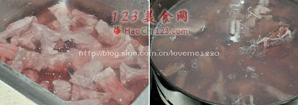 2、浸泡好的腔骨,清洗干净,冷水放入锅中,开火煮开。