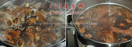 4、料汁要提前炒香煮开,这样味道才能更好的融到肉里。