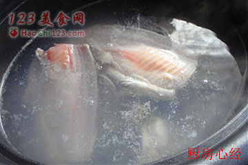 2、熬制鱼汤,主要是熬鱼骨,不是熬鱼肉。所以,踢下鱼肉,熬制鱼骨、鱼头、鱼尾。