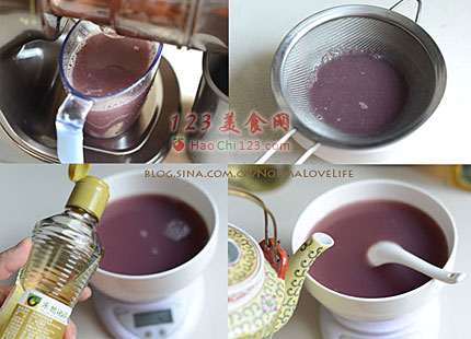 9、加入适量的蜂蜜调味,按自家的口味来,葡萄比较酸的当然要多加些,不然很酸下不了口。
