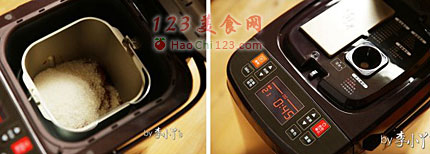 4、按菜单键选择21号山楂糕功功,接着按下启动按键,面包机开始工作,45分钟完成炒果馅,炒好的馅料放置温热。