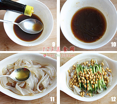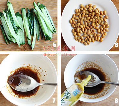 12、拌匀后放置10分钟,待入味后放上黄瓜丝和酥豆即可。