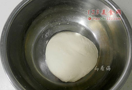 5、面粉加适量水先和成棉絮状(我用了400克面粉190克温水,面粉吸水率不同,所以在和面时分次加入水,防止和出来的面团过软或过硬),和好的面团用保鲜膜或锅盖盖上静置30分钟备用。