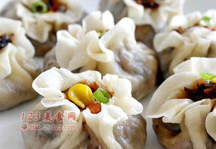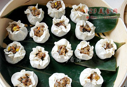 9、薄薄的皮透明弹可破的感觉,咬一口下去真实惠哦,哈哈,全是馅儿,加了梅干菜,烧麦吃出新味道了。