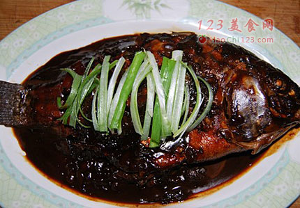 5、等汤汁黏稠后起锅即可出锅,将鱼盛入盘中,然后将汁倒在鱼身上,一道香喷喷的酱炖罗非鱼就这样大功告成了,记住用鱼肉沾着汤汁吃味道更佳。