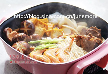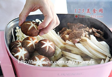 3、这道火锅吃的时候不需要蘸酱,直接吃就很有味道(日式酱油是味道的主要来源,这道火锅分量很足,如果你做的分量有所减少,需要相应减少酱油的用量,调节成自己喜欢的咸度)。作为一道日式风格的火锅,如果你不介意生鸡蛋,可以打一个生鸡蛋,在吃牛肉片的时候,蘸上鸡蛋液食用。鸡蛋液可以让牛肉的口感更嫩滑更有层次。[LaoYanHuo.com]