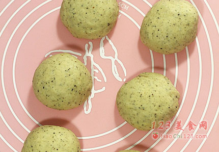 5、发酵好的面团取出排气,均等分成6份,滚圆后盖上保鲜膜,松弛5分钟。