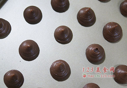 9、将面糊移入裱花袋(1cm圆嘴)在烤盘上挤出均匀大小的小圆球。