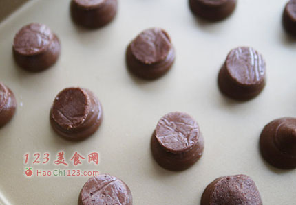 10、将步骤3的酥皮面片从冰箱取出,用模具刻出比步骤8当中小圆球略大的一些的小圆片放在圆球上方。