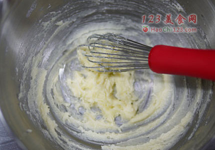 3、用刮刀搅拌粗粒状,抓捏成团。