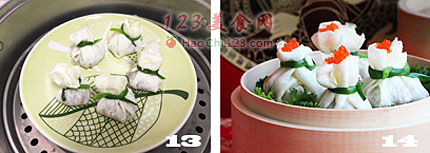 13、然后裹紧封口做成石榴状,上笼蒸4分钟即可。