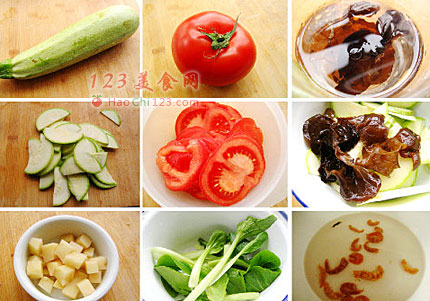 2、除了材料中提供的配菜供你参考,还可加入各种你喜爱的蔬菜和菌菇,种类不限。