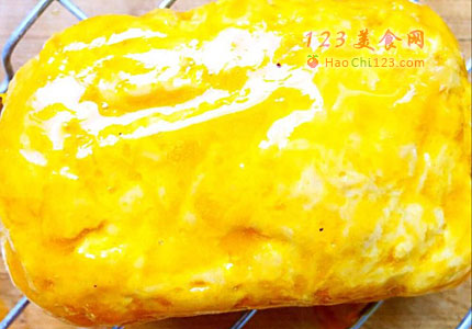 6、将蛋黄液均匀的刷在肉上,再入锅蒸5分钟至蛋黄凝固熟透即可。