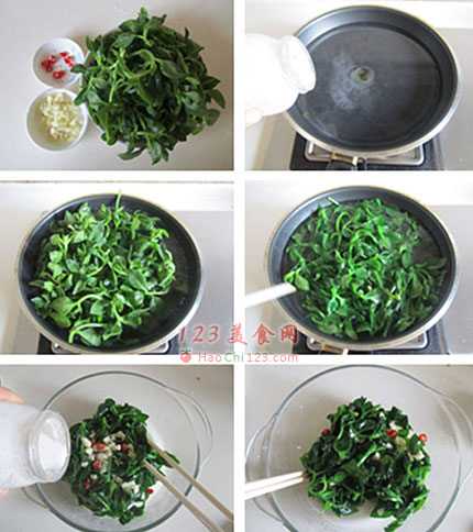 贴士:1、绿叶菜焯水时注意加入几滴油和少许盐能让菜叶保持菜品颜色更翠绿,焯水时间不宜过长,避免维生素的损失。