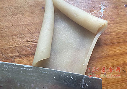 2、迎着光,查看猪毛情况,有就拔出,煮过的猪皮很软,猪毛也很好拔。猪皮内侧的猪油,用刀刮干净(这一步非常重要,猪皮干净不干净,会直接影响你的猪皮冻是否好吃)。