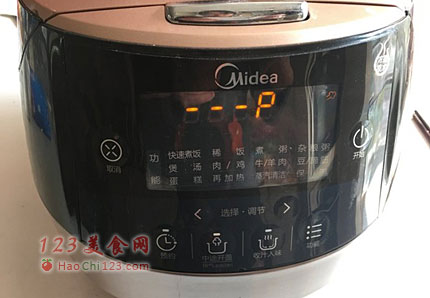 8、开启电压力锅再加热功能(这个程序工作20分钟,我中途开盖,工作了13分钟,不要一直加热,豆豆和花生就熟过了)。到13分钟,开启提前开盖功能,放气(这个电压力锅可以自动放气,提前开盖,很方便。如果你的机器没有,这步可以换到其他锅子操作,不用电压力锅了,不然花生和豆都煮面了)。