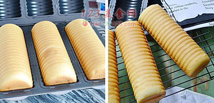 6、出炉立即脱模,放网上放至还有一点点微温时,放入保鲜袋保存,完全凉透取出整条,吃!