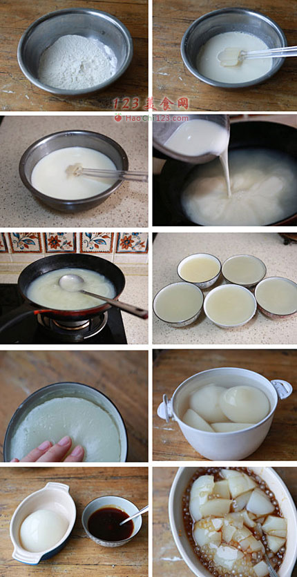 10、凉糕划小块,淋上红糖汁就可以了。我还多加了一些西米和蜜红豆。