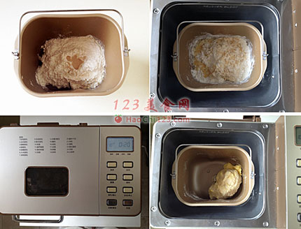 5、程序结束后面团到扩展阶段,取出放入容器,盖上容器盖,放置温暖处进行基础发酵。