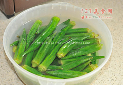 1、秋葵清洗干净之后一定要用水焯一下,3-5分钟,无论是炒还是凉拌,秋葵都要用水焯一下。