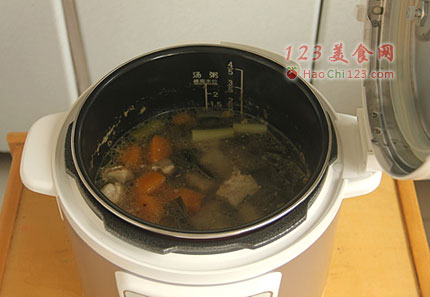 5、程序结束,打开锅盖,撇去浮沫,加盐调味即可。