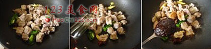 2、倒入焯过水的牛腩翻炒,加入料酒、生抽、柱候酱翻炒均匀后加入末过牛腩的热水,大炎煮开。