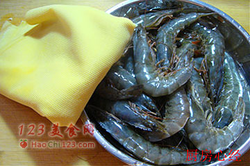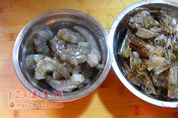 4、将草虾剥皮,留下虾仁和虾头备用。