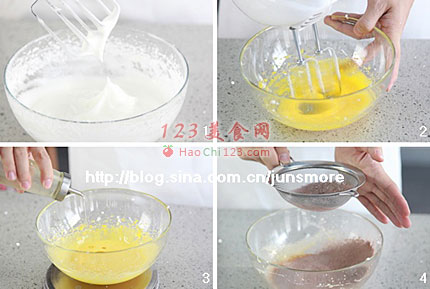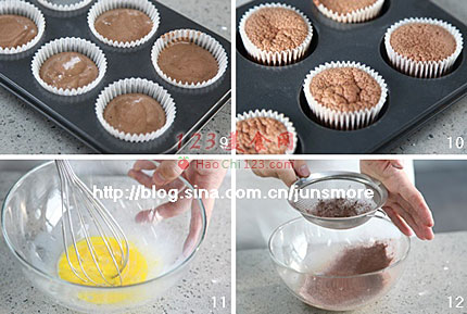 12、玉米淀粉和可可粉混合筛入蛋黄液里。