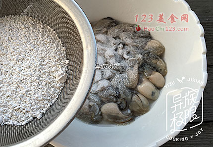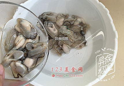 1、清洗鲜蚝时,下手一定要轻,别把它捏破了。