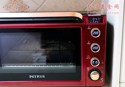 7、鸡放入预热好的烤箱,食物探针插入鸡肉里,合上烤箱们。烤箱用上下大温幅模式,200度预热功能,上下火210度烤1个小时。