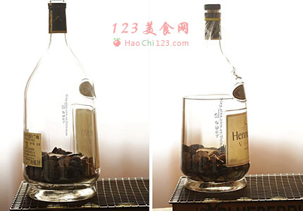 3、将切好的松露片装瓶子里,注入4倍的高度白酒。