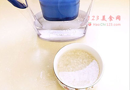 3、过滤过的水倒入锅中,煮开后加入白米,盖上锅盖至文火熬20分钟时,开始不停地搅动,一直持续约10分钟,到呈酥稠状出锅为止。过滤水会使粥的味道会更香,而且不会在锅里残留水垢。