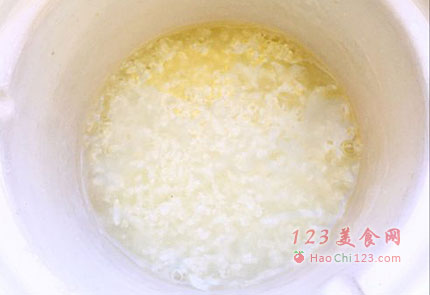 6、有人可能会问我怎么熬出的粥不浓稠,你没有按上述步骤做,再教给你个小窍门就是加些糯米就好了。