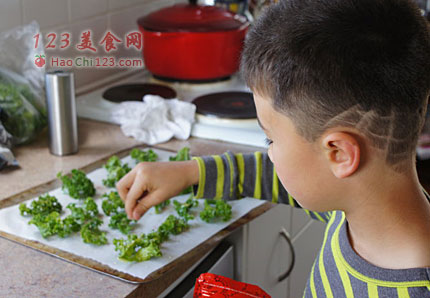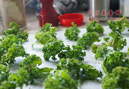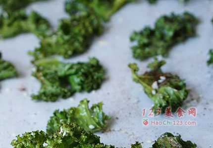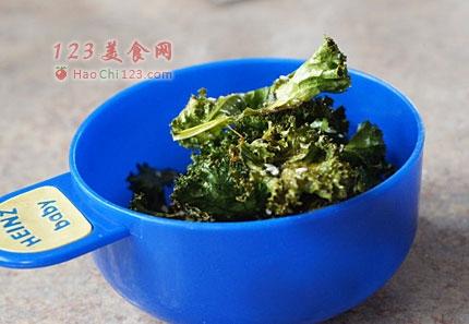 7、烤好的薄脆,叶子应该是翠绿,不黄也不焦,咬下去和薯片一样脆。