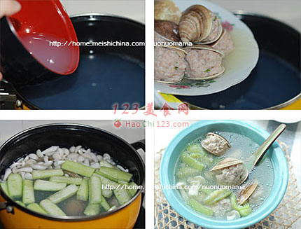 10、放入蒸熟的蛤蜊狮子头,焖煮5分钟左右。