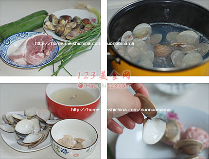 3、蛤蜊去壳取肉,汤汁沉淀去除杂质备用。
