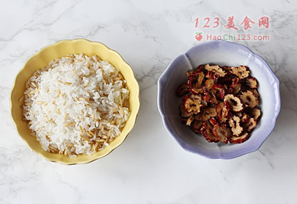 2、大米和燕麦米淘洗干净;红枣干洗净。