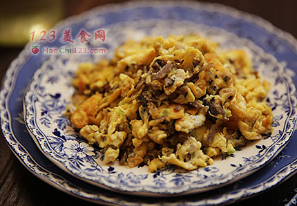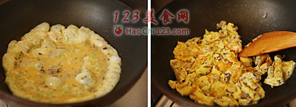 5、为了不抢松露的香味,特意使用了禾然有机的山茶油,蛋液里加了切碎的小葱,与略带韧性的松露碎同炒,即丰富了口感又增添了一层淡淡的葱香味,虽是清淡小炒,吃起来极开胃下饭。[LaoYanHuo.com]