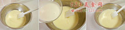 9、再放入鲜奶油拌匀,每样材料放入后都要充分搅拌均匀。