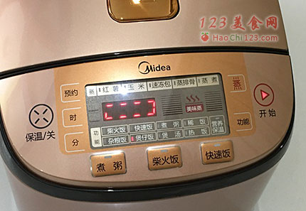 8、选择电饭煲煲仔饭功能(我试过其他程序,都不能烘出这个金黄色的噶扎,只有煲仔饭这个功能火力大,能很快煎黄)。