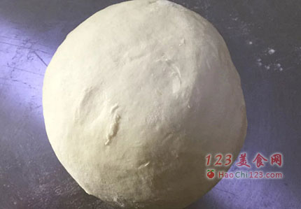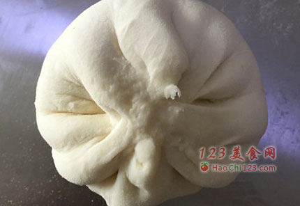 6、象包大包子一样包起。底朝下擀成0.6-0.7厘米左右厚的圆饼。