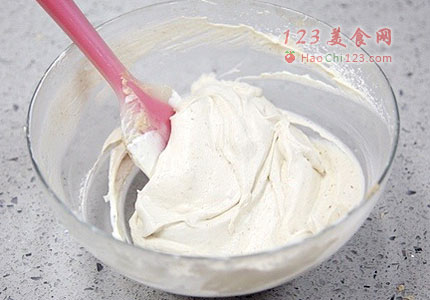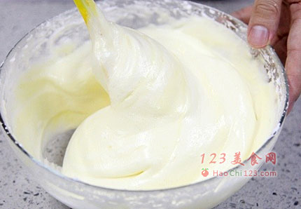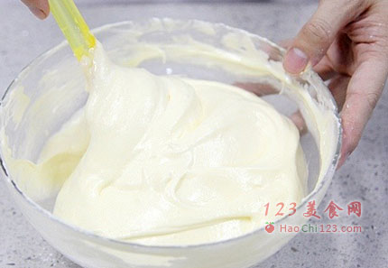 1、制作这款蛋糕,最重要的是翻拌的手法。无论是蛋糕面糊,还是奶油馅,都有大量的翻拌动作。拌的时候动作要迅速、大幅度,果断一些,不要长时间反复翻拌,会引起消泡。