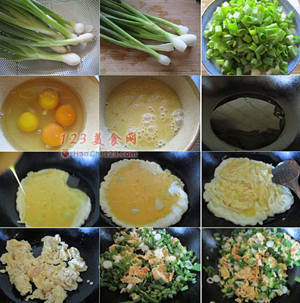 7、倒入葱花,翻炒到葱花软掉。