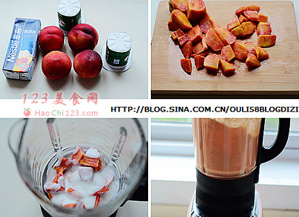 3、桃子、淡奶油、酸奶混合放入搅拌机。