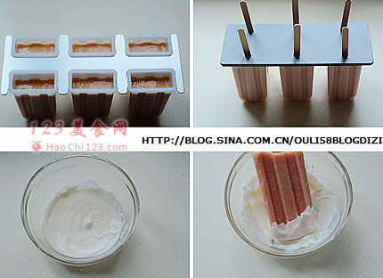 6、将果浆倒入冰棍模中,放入冰箱冷冻六小时以上。
